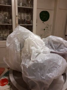 Megtapicskoltam, tömörítettem, beöntöztem és zacskót húztam a rájuk, mint a daerolt nénik a fodrászatban. A zacsi jó párás környezetet ad még pár hétig, amire szükségük van a gyökeresedéshez.
