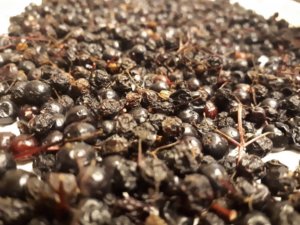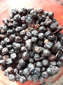 Fontos, hogy a fekete bodzát ne tévesszük össze a földi, illetve a fürtös bodzával. A földi bodza kellemetlen illatú, a talajszint feletti rész minden évben elpusztul, ezért fás hajtást, szárat egyáltalán nem találhatunk a földi bodzánál. A fürtös bodzát a fekete bodzától a termés szín különbözteti meg, míg a fekete bodza bogyótermése fekete, addig a fürtös bodzáé vörös. Szerencse nekem a kertemben is van fekete bodza, így pontosan tudom, hogy se benzingőzben, se permetben nem úszik, csak napsütésben, szeretetben, csalános lombtrágyában, esővízben. Le is szedegedtem, ami még rajtamaradt, pár hét alatt ki is száradt, eltettem a Hétfő teámhoz, amit szép színűre fest, és csodálatos hatóanyagokkal ajándékozza meg, pláne jó ízzel. Természetesen feketén, abszolút éretten most szedtem szeptemberben.