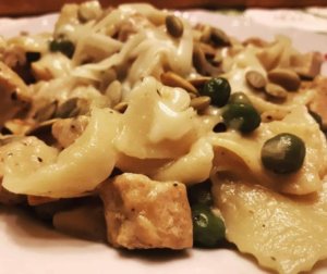 Vagy tésztát gyúrok és citromfüves-bazsalikomos borsós ragut adok hozzá: