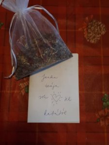 Aztán a nyári dionüsszoszi hedonista átbulizott sűrű időszak végén behúztam a féket. Olyannyira, hogy letettem a cigit. Abszolút. Segítségül egy teakeveréket csináltam magamnak aminek az alapja a citromfű volt. Erős kapaszkodó volt sok más fűvel együtt, ami fantasztikus segítséget adott egy szép méregtelenítéshez, függésem oldásában. (később bemutatom majd). Erőt adott és nagyon rászoktam. Augusztus 25. óta több liter gyógynövény teát iszom naponta. Radikális fordulatot vett vele az életem. Készítettem sok teakeveréket ajándékba és magamnak is, sok alapanyagban szerepelt a citromfű… Például a lélekoldó teám egyik alapanyaga, amit sok helyre adtam ajándékba. A férjem bőre, arcának kisugárzása gyönyörűen kisimult tőle, minden nap gyönyörködöm benne.